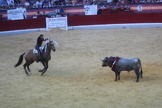 banderillas a una mano, el toro sigue en su tónica de no querer caballo y